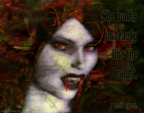 Remember the dreams you had when you were a little girl? What did you want to be when you grew up? Was it a ballet dancer, president, business woman/owner, educator, engineer or artist? Or all of them? Or did your life turn out completely different that you thought it would be? Well, Angelina Jolie kinda wanted to be a vampire…so here's my entry of what I thought she'd look like if she was a girl vampire. Yep, it's creepy!