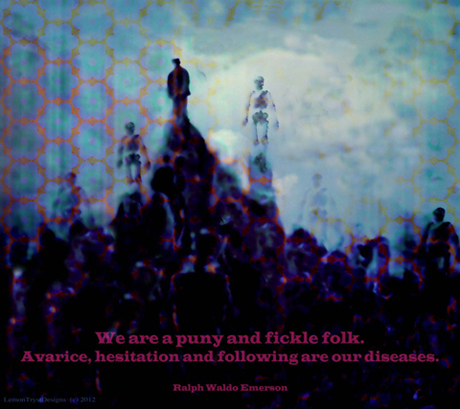 Okay, these two are dark because of their message. Sometimes the darkness exists in our thoughts. Now that's really scary! The first one reveals how not thinking for yourself can keep you in a dark, dark place and lead ultimately to the scariest place of all. (Again, I love how the CA background created an image of souls following someone to their end.)