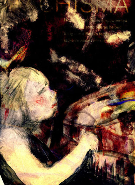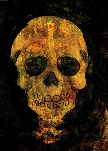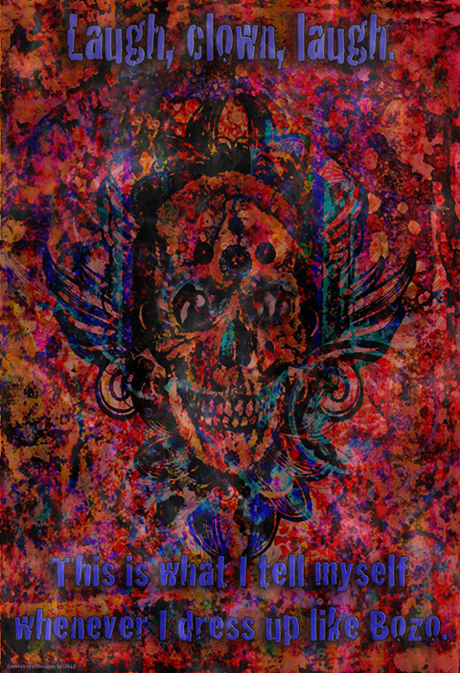 Today's entry is apparently the last in my pinkish skull series. It's called "Laugh Clown." Just the way the CA background worked out…it gave it a circus feel. And the skull itself reminded me of Bozo the Clown. Do you remember him? He was big in the Chicagoland area.