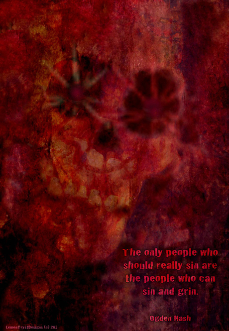 Allright, I took pity on your nerves…but only for today. This entry is just a little spooky, but I add a wry touch on the tombstone.