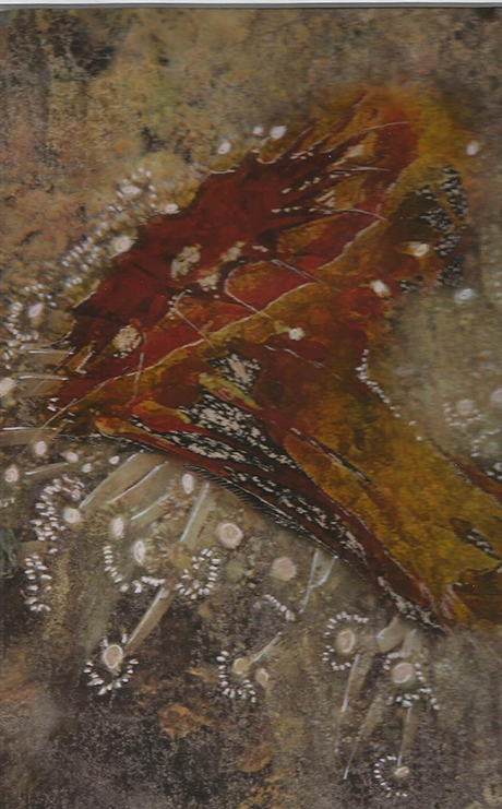 Mosaic structure in this piece and the placement of the leaves creates the feeling of movement and dance.