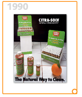 1990 marked the 20th anniversary of Earth Day and a turning point for the environmental movement. People began understanding the importance of cleaning with natural household products. Citra Solv started popping up in mainstream grocery stores and gained national distribution. |