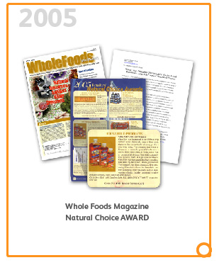 In 2005 we were honored to receive the Retailers' Natural Choice Award given out by Whole Foods Magazine. The award was voted on by natural products retailers. |
