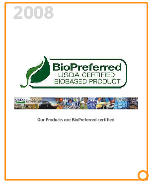 2008 – Our products are certified as USDA BioPreferred.